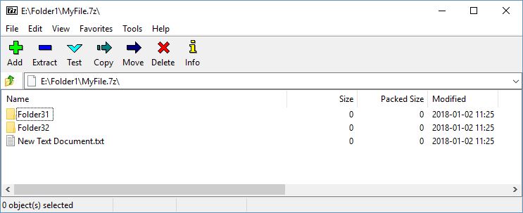 这里我们使用 Folder2\* 指定我要将 Folder2 目录里的所有内容加入到压缩包。执行完毕后,打开压缩包查看压缩内容时发现: